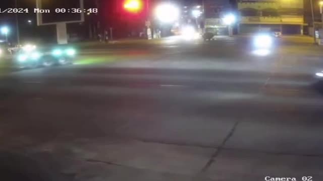 Footage shows orange sparks spattering on the pavement as the stolen Toyota pickup zigzagged across lanes in Krabi province on January 18. 2024-01-22 17:40:20
