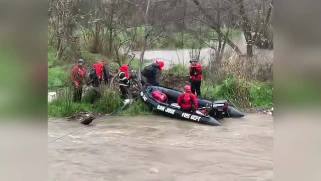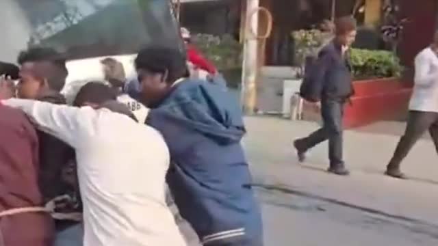 Footage shows the uniformed men with their large backpacks and guns running away from the grassfield as the cow tried to charge at their line in Narathiwat province, Thailand on May 25.
