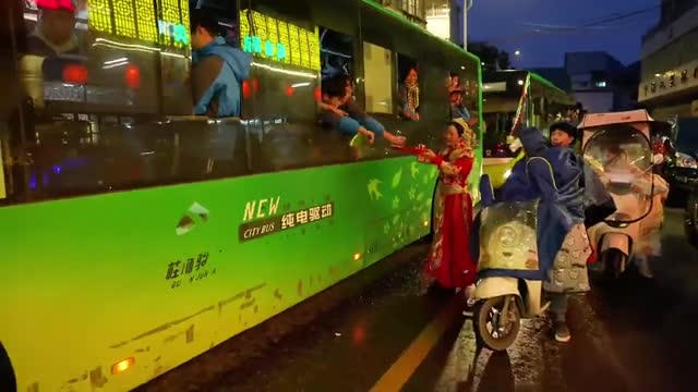 The newlywed couple were welcoming guests to their wedding reception when they noticed a school bus stopped in front of the door due to a traffic jam in Guilin, Guangxi, China, on February 17. 2024-03-05 21:58:00