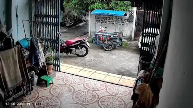 The irritated calico tabby named Daidai was sitting beside its owner when it suddenly pounced in Chongqing, China, on February 29.