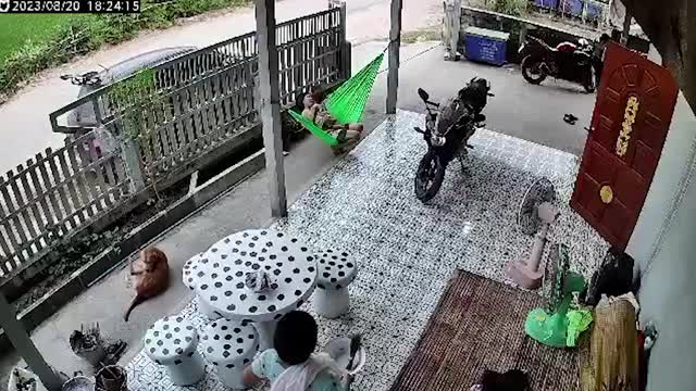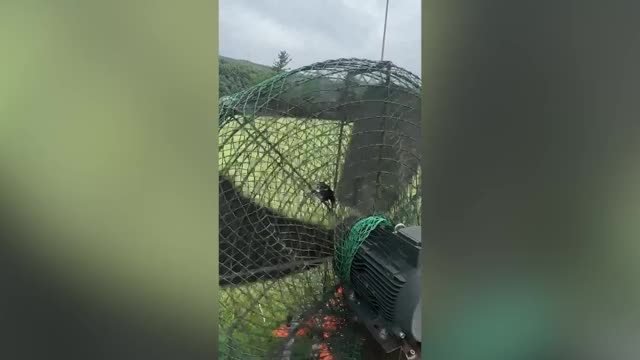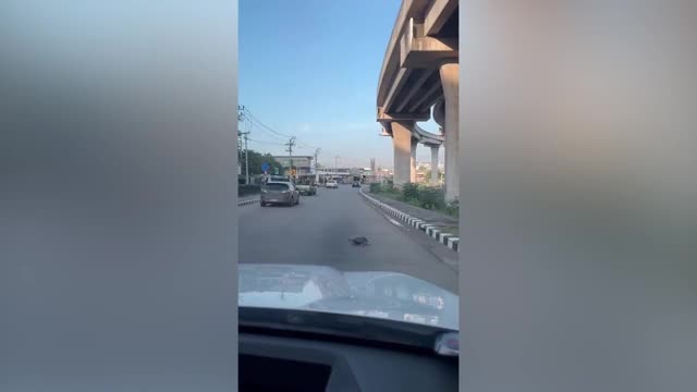 Footage shows the shelled animal trying to jump into the canal when it fell the wrong way, and a local helped push it into position in Samut Prakan, Thailand, on August 28.