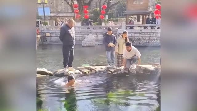 Footage shows the dragon shaking its rear end to the women who touched it before the amused performer stood up and laughed in Hebei province, China, on February 9.