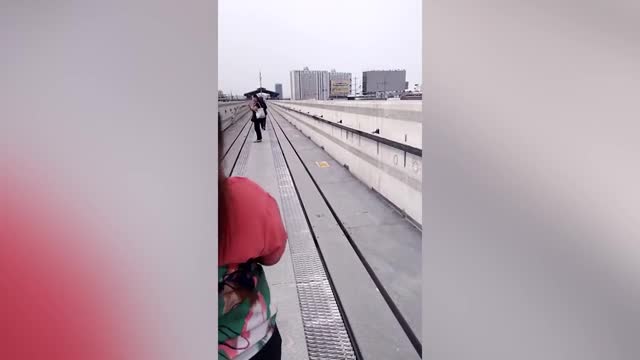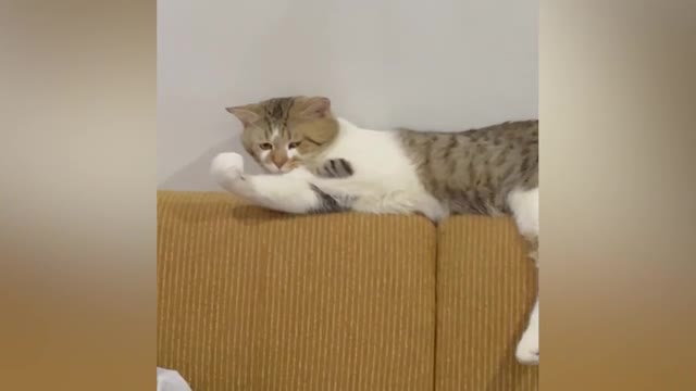 Footage shows the grey tabby moggy named Bambi hugging the head and shoulders of its owner while she was busy with cleaning chores in Manila, the Philippines on March 26.
