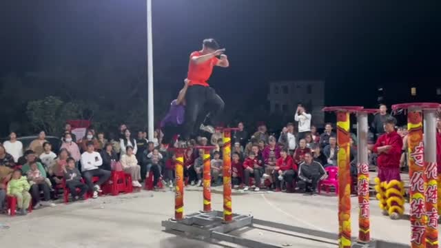 Footage shows the lads - without wearing a costume yet - demonstrating to the other performers how they do the stunt in Guangdong province on February 16. 2024-03-05 22:15:09