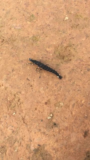 Footage shows the bug creeping on the ground using its small limbs attached to its black, scaly body in Chiang Rai province, Thailand. 2024-03-06 08:43:07