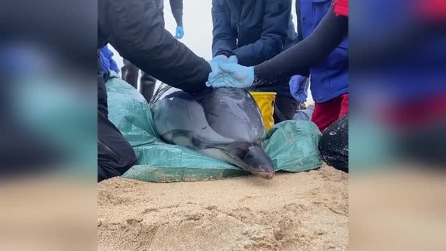 The British Divers Marine Life Rescue responded to the scene at Praa Sands, where a striped dolphin was found stranded amid blustery weather on February 17. 2024-02-27 15:06:02