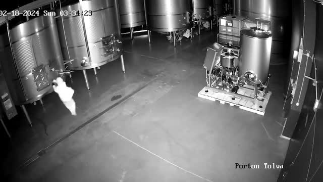 CCTV footage shows the hooded crook opening vat taps, sending a jet of expensive wine flooding the Cepa 21 winery in Valladolid, Spain, in the early hours of February 18. 2024-02-27 12:44:49