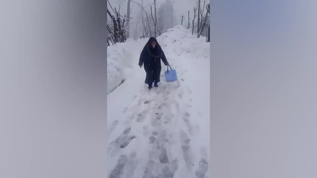 Footage shows a health worker trudging across the thick snow to deliver the medicines to the mountainous areas of Kashmir on March 3. 2024-03-04 11:52:56