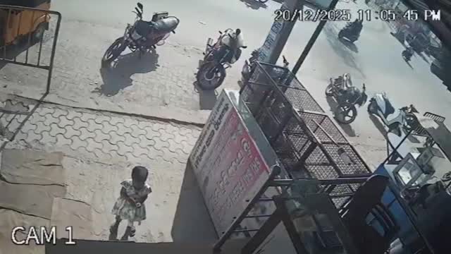 Dramatic CCTV footage shows the young girl standing outside a building by the roadside when the overloaded truck passing by began skidding in her direction in Telangana, India. 2025-12-23 13:53:02