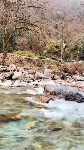 Ms Jiang and her friends spotted the stump-tailed macaque crossing the river through the cable lines to approach them on the riverside at the Erlang Mountain Laba River in Sichuan, China. 2025-12-23 14:16:02