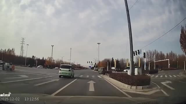 Dashcam footage shows the three-wheeler crossing the road against a red light at a busy junction, cutting directly into the path of an oncoming car in Henan, China. 2025-12-23 14:18:00