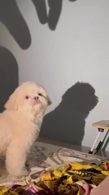 Boie, the curious Shih Tzu, was watching the dark shape of his owner's hand on a white background when he suddenly scrambled off the bed in fear in Bulacan, the Philippines. 2025-12-23 14:11:52