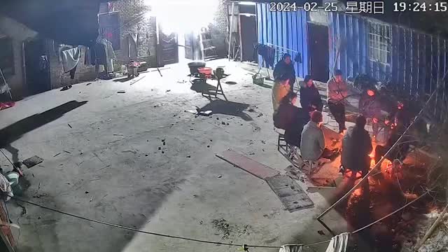 Surveillance camera footage recorded in thecity of Zhoukou, in China's central province of Henan, showed a family clearing snow intheir front yard on February 24. 2024-03-05 13:43:31