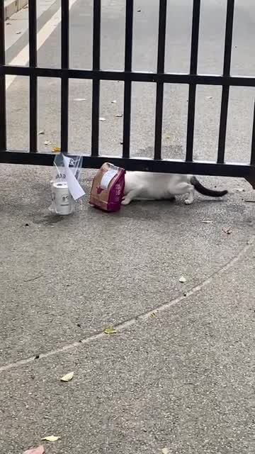 Footage shows the three-month-old Paotang grabbing the container and taking it to the corner to enjoy his dinner in Bangkok, Thailand, on September 27.