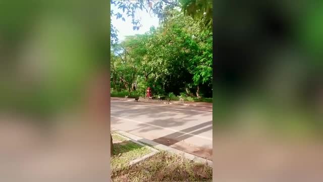 Footage shows the bald biker balancing the bottle on his head as he moved over the zebra crossing using only one leg in Guangdong, China, on October 23. 2023-10-26 11:35:01