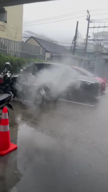 Footage shows white smoke coming from under the seat of the two-wheeler while the area was being battered by a storm in Thailand on February 14. 2023-10-26 11:36:52