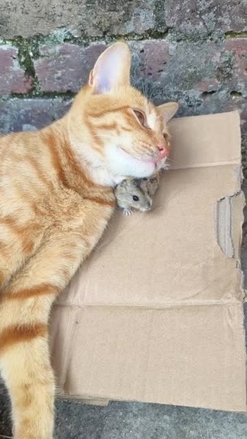 Video shows the orange feline using its friend Roborovski hamster as a pillow as they snuggled together on a pavement in Yulin City in Guangxi, China, on October 16. 2023-10-26 11:35:23