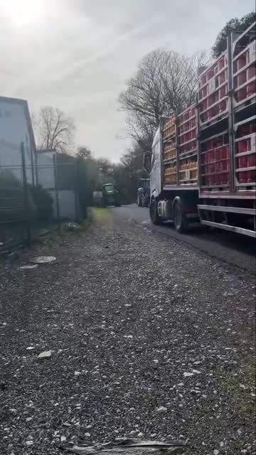 A lorry carrying gas cylinders was turned away at the entrance of Whitegate Refinery as demonstrators barricaded the road over rising fuel prices. 2026-04-15 21:05:06