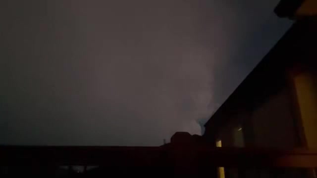 Footage shows a stormy sky, with heavy clouds blanketing the horizon, as flashes of lightning illuminate the northwest Lawrence area. 2026-04-15 17:21:55