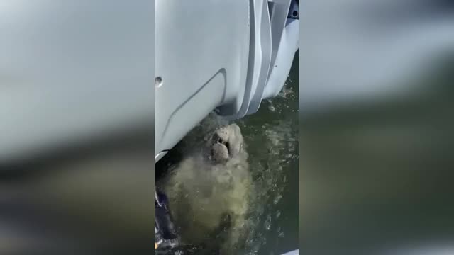 Officers Emrich and Eades of the Bradenton Police Department Marine Unit were finishing their patrol and rinsing their boat when the unexpected visitor appeared at the dock. 2026-04-15 17:21:29