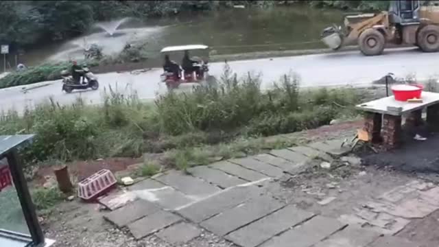 Footage shows the colourful vegetables - donated by schoolchildren who decorated them to drivers - tied to a trellis overhead and swaying while the vehicle travelled in Qingdao, Shandong province, on October 4.