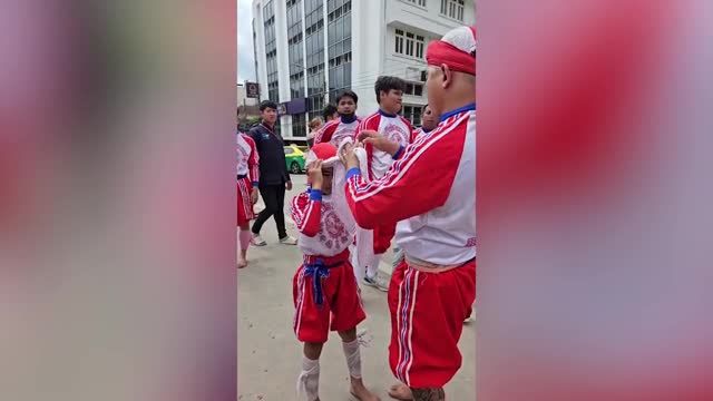 Footage shows the acrobats - including young children - wowing spectators as they stood on top of each other to form a human spire in Bangkok's Chinatown on October 15. 2023-10-23 12:31:30