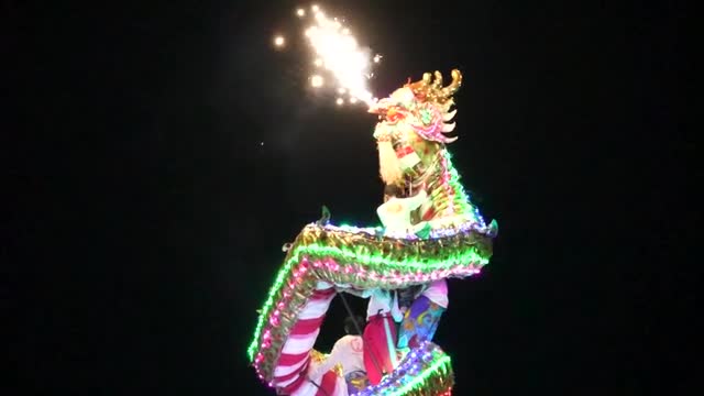 Footage shows the religious followers climbing to the top of a large pole with the mythical creature wrapped around it on Saturday night. 2023-10-23 12:30:45