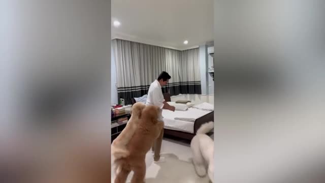 The affectionate pooches immediately mobbed Duke Bhanudej when he returned home to Bangkok, Thailand on February 27, following a 10-day trip to Australia. 2023-10-20 14:16:41