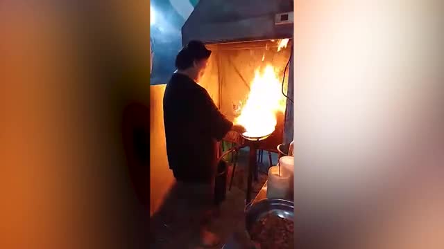 Awesome footage shows the unfazed master cook mixing the food in his wok as it erupted in a fiery burst in Bangkok, Thailand, on February 27. 2023-10-20 14:14:13