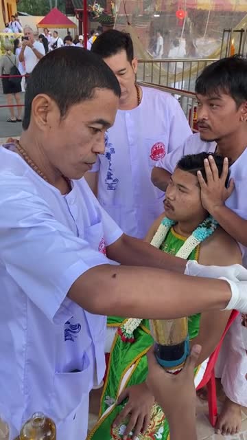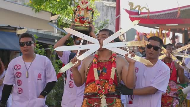 Footage shows the rituals in a Chinese temple on the popular holiday island before. Followers claim they go into psychic tracers before the eye-wincing displays of bravery which are said to cleanse their spirit and prove their religious devotion. 2023-10-23 12:29:58