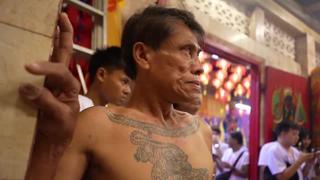 The Taoist devotees went to extreme lengths to show their commitment to their beliefs, with one man even carrying three swords cross-crossed through his cheeks. 2023-10-23 12:29:33