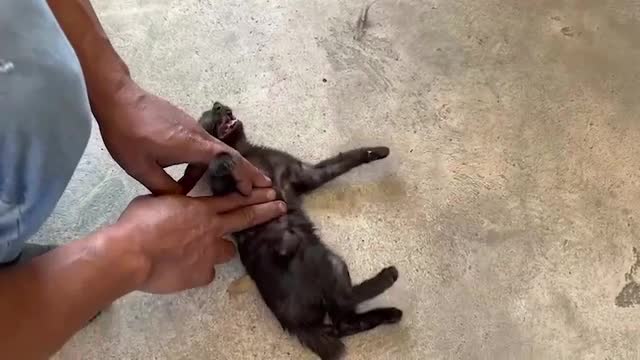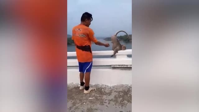 Footage shows the man tickling the macaque's abdominal area as it rested on the structure in Ubon Ratchathani, Thailand on April 21. 2023-10-05 18:40:41