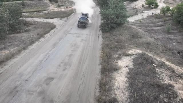 The images appear to show two of the Russian war machines driving down a dirt track before maneuvering into position in a clearing. 2023-10-06 12:05:45