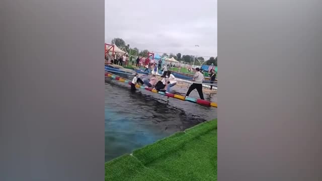 The woman was reportedly trying to get back at the little kids, thinking they shoved her child into the water at the Cloud Playground, in Hanzhong, in northwest China's Shaanxi Province, on October 2. 2023-10-06 11:55:00