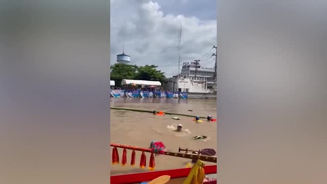 Footage shows the parent using a handheld drill with a dish scrub attached and using it to quickly scour hardened milk off plastic containers soaked in basins in Samut Sakhon province, Thailand on October 8.