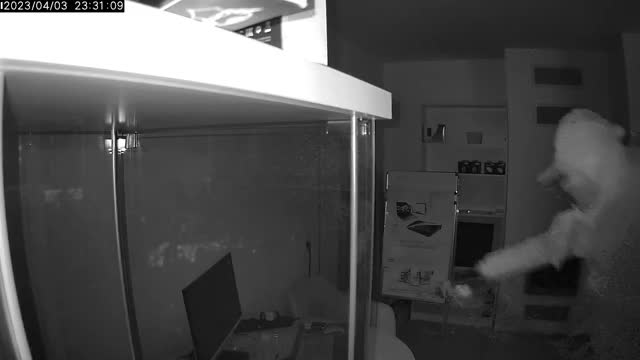 Footage shows the man revealing himself from behind the curtain before the couple’s ginger moggy ran to hide in the bedroom while he quickly followed behind and went to the other room in Hebei province, China on September 30.