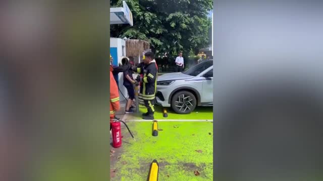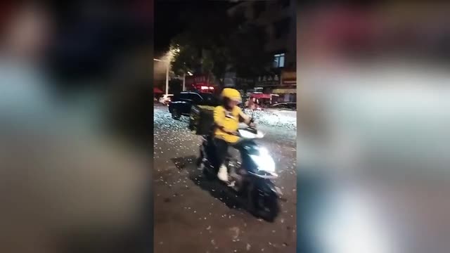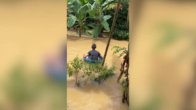 Woman blown across ground during Typhoon Saola in Hong Kong