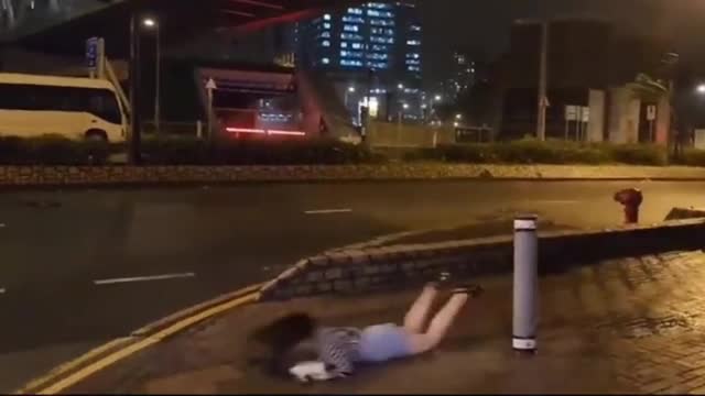 Footage shows the unnamed woman - dressed in shorts and a striped long-sleeved shirt - experiencing a painful fall while walking in Tseung Kwan O, one of the nine new towns in Hong Kong on the evening of September 1.