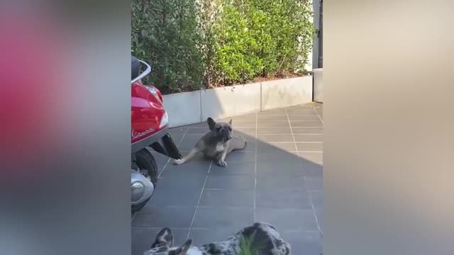 Footage shows the pooch sprawled on the tiles in the garage and spinning around in an awkward position in Surat Thani province, Thailand on January 17. 2023-08-28 23:03:16