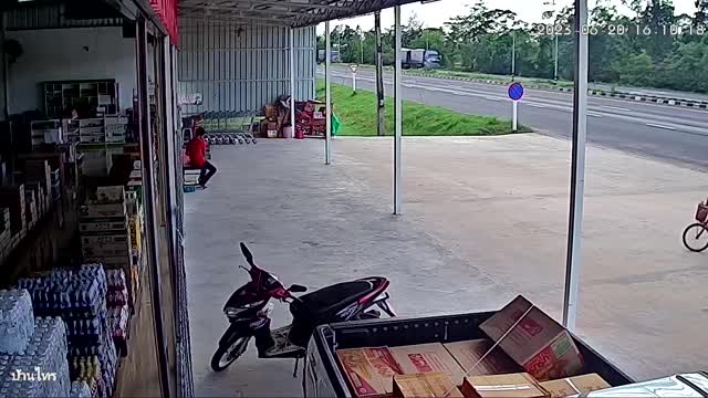 CCTV footage shows the old woman stopping by a shop before falling into the grassy roadside in Surin province, Thailand, on June 20. 2023-08-29 08:36:20