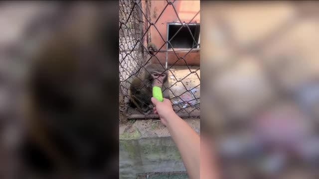 Footage shows the monkey suddenly change its attitude towards the visitor at a zoo in Liaoning province, north-east China on July 31. 2023-08-07 13:21:00