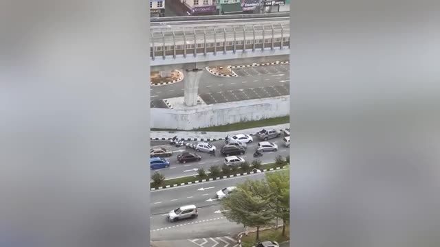 Footage shows what appeared to be members of the Royal Malaysia Police pursuing a gray Proton Wira on foot as it squeezed through traffic in Kepong, Kuala Lumpur on Monday, August 7. 2023-08-07 16:28:50