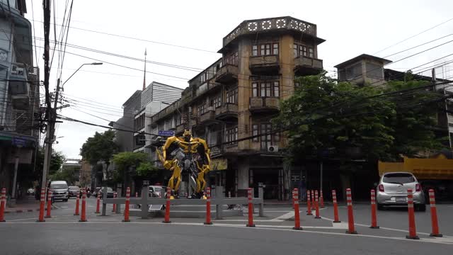 The futuristic yellow mecha was installed by the Samphanthawong District Office along Yaowarat Road in Bangkok's Chinatown area in July. 2023-08-02 13:21:57