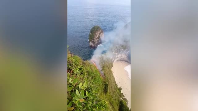 The blaze began at the cliff's base at around 4:30 pm local time and rapidly spread upward, fanned by strong winds blowing onto shore. It razed shrubs and bushes, and threatened to engulf the steep stairway providing tourists access to the beach. 2023-08-02 13:06:36
