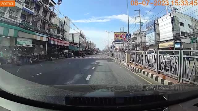 Dashcam footage shows the blue vehicle avoiding hitting the truck on its side before slamming into the structure and smaller cars in Chonburi province, Thailand on July 8. 2023-07-26 21:47:39