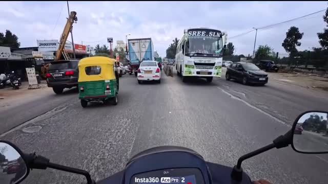 Footage shows a busy highway in Bangalore, with the rider entering the opposite lane and becoming trapped in the counterflow section by a barrier, unable to reverse. 2025-12-08 21:10:20