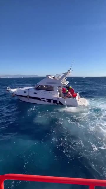 Footage shows emergency responders from Salvamento Maritimo inspecting the recreational vessel on December 7 under a clear blue sky. 2025-12-08 21:08:20