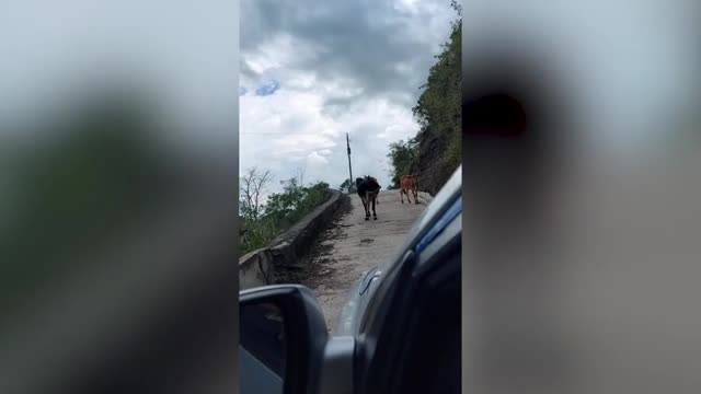 The creatures were grazing around a village when they roamed into the pavement in Mountain province, the Philippines on January 29. 2023-04-17 21:55:07