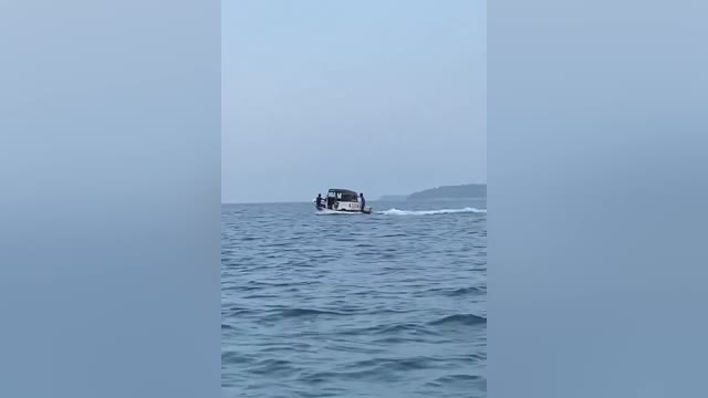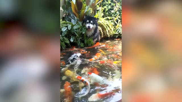 Footage shows the nine-month-old pooch Jedi on the pool's edge as dozens of white, orange, and yellow creatures swam in Nonthaburi province, Thailand on April 6. 2023-04-17 22:00:29