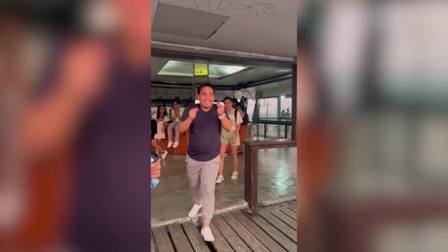 Footage shows the excited man Ace Torrecer running towards his friend when his left foot fell into the gap in the floorboards in Antipolo City, the Philippines, on April 8. 2023-04-17 21:49:06